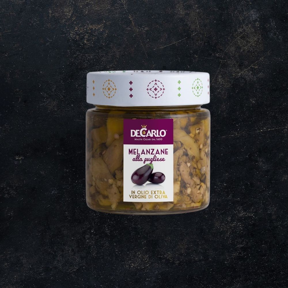 La consistenza carnosa e il gusto ricco e aromatico rendono queste melanzane un contorno versatile e saporito, ideale da gustare come antipasto, su crostini, o per arricchire insalate e piatti unici. Ogni vasetto è un concentrato dei sapori autentici della Puglia, frutto di una filiera corta, sostenibile e controllata, in cui la famiglia De Carlo è attiva da generazioni. Il sapore delle melanzane, unito alla fragranza dell’olio e degli aromi, offre un equilibrio perfetto tra dolcezza, acidità e nota speziata, per un'esperienza gustativa che conquista fin dal primo assaggio.