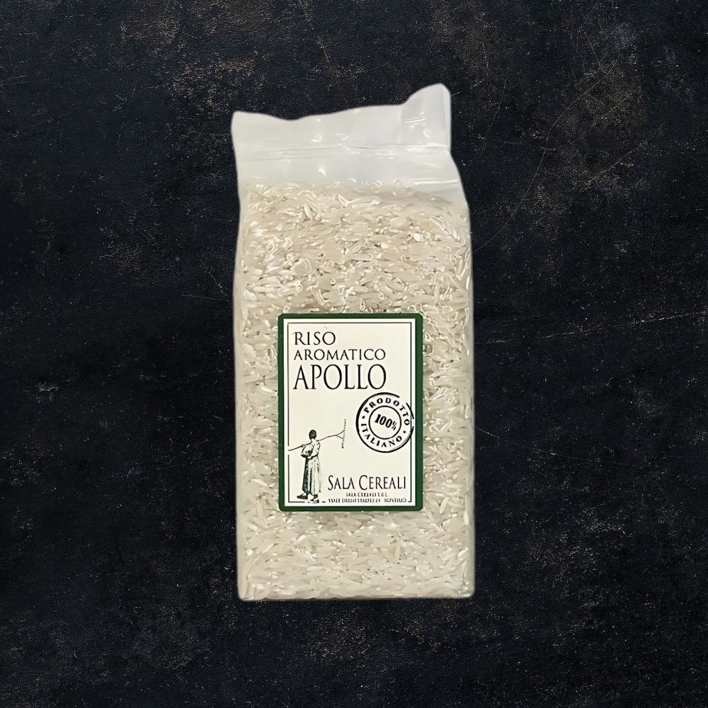Il Riso Aromatico Apollo è una varietà italiana a chicco lungo appartenente ai “Lunghi B”, nata dall’incrocio tra risi asiatici profumati e risi italiani di alta qualità. Coltivato in Piemonte e Sardegna, offre un profilo aromatico simile al riso basmati e al riso jasmine, con sentori di fiori bianchi, popcorn e fieno. Il suo granello cristallino, affusolato e ad alto contenuto di amilosio (circa 24 %), garantisce una cottura veloce, asciutta, ben sgranata e lievemente profumata.