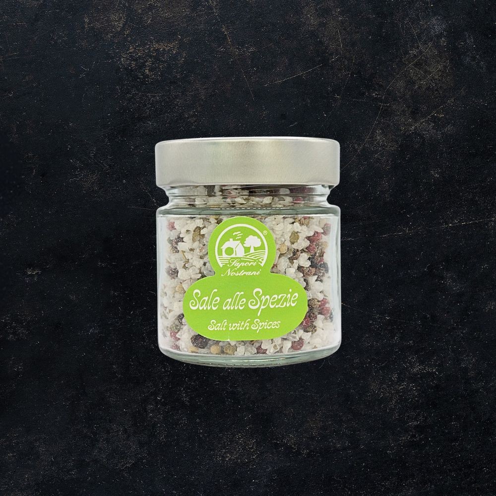 Sale marino italiano (96%); Pepe bianco; Pepe verde; Pepe nero; Pepe rosa; Ginepro; Alloro; Prezzemolo.